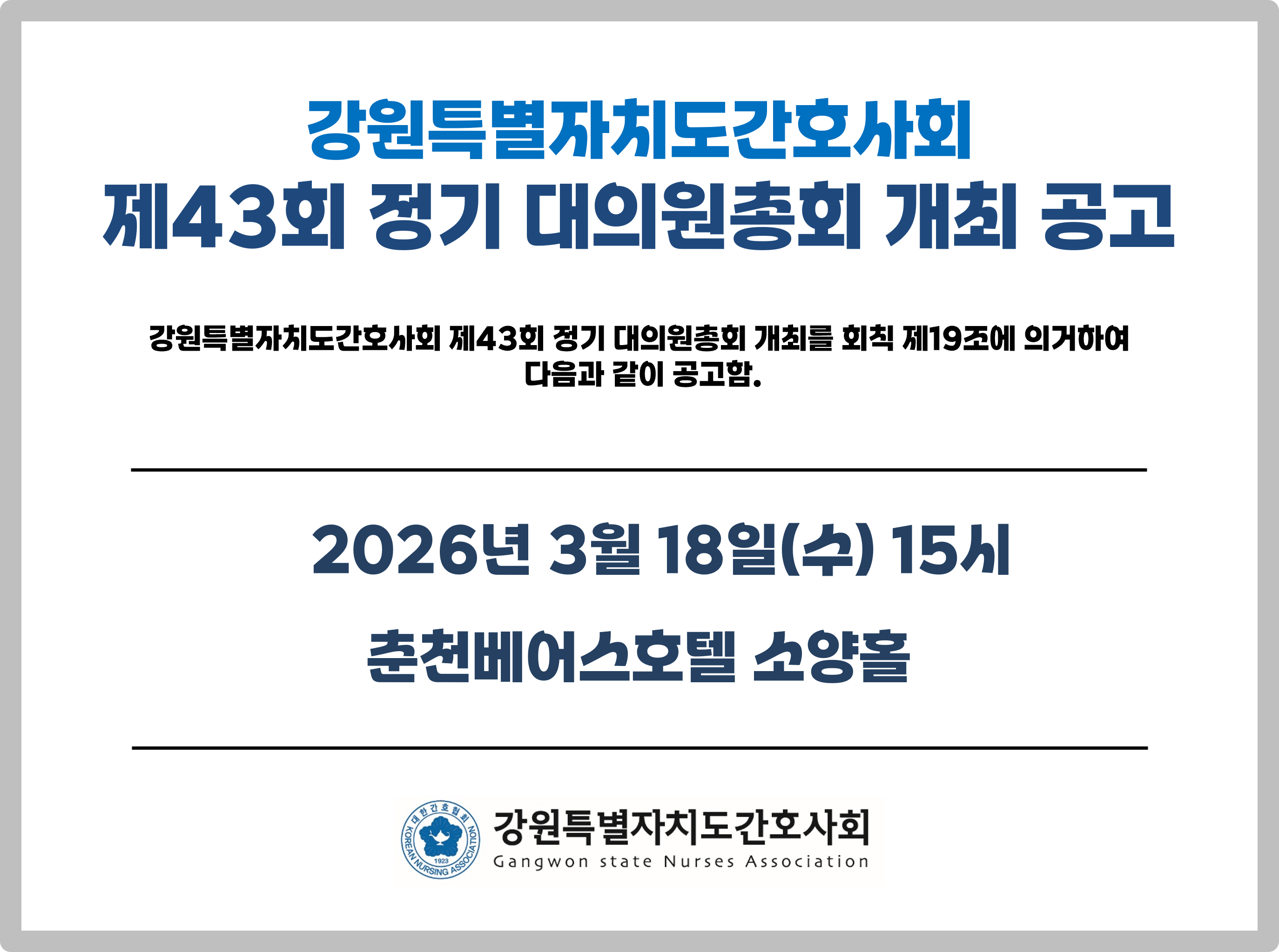 [강원특별자치도간호사회] 제43회 정기 대의원총회 개최 공고